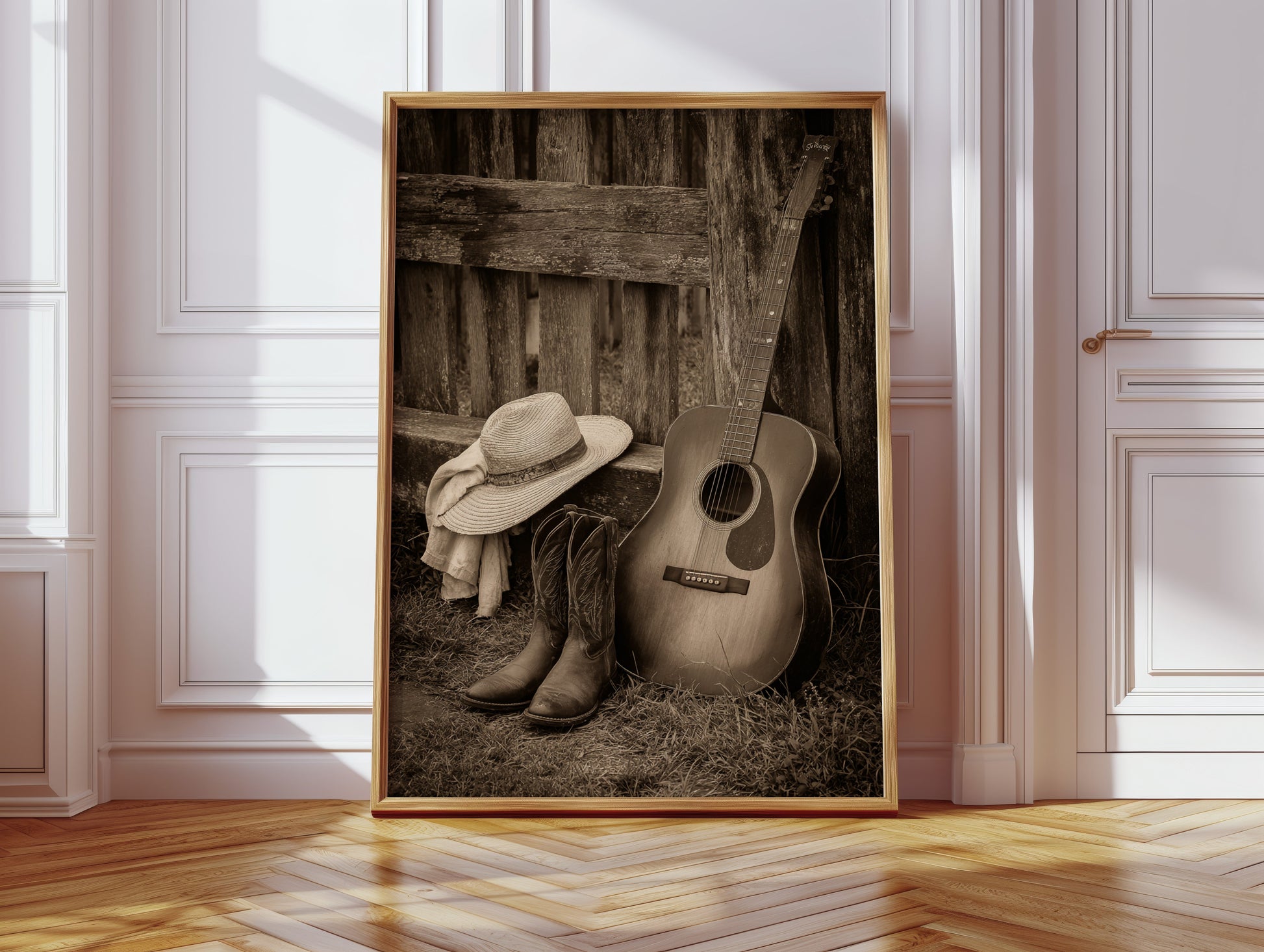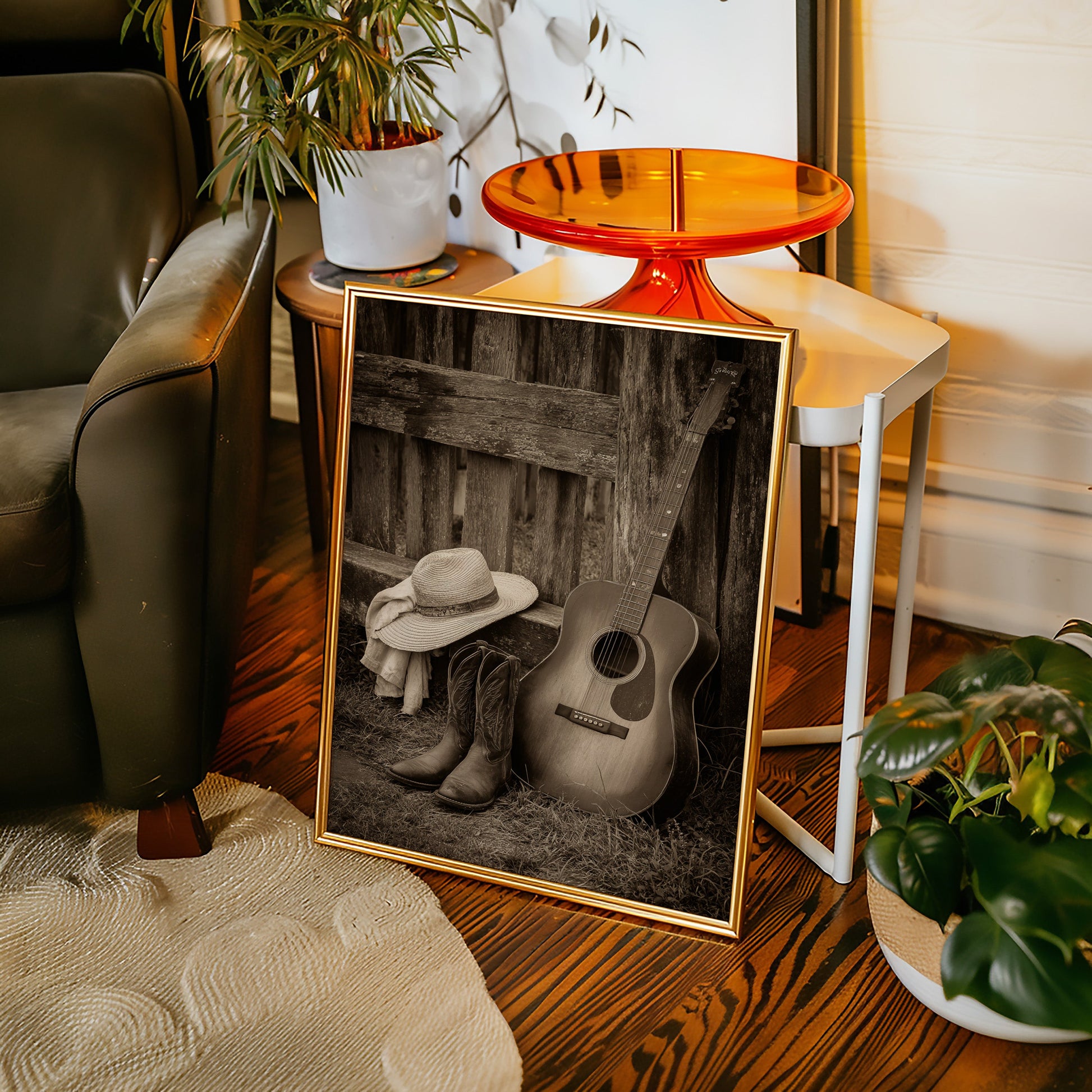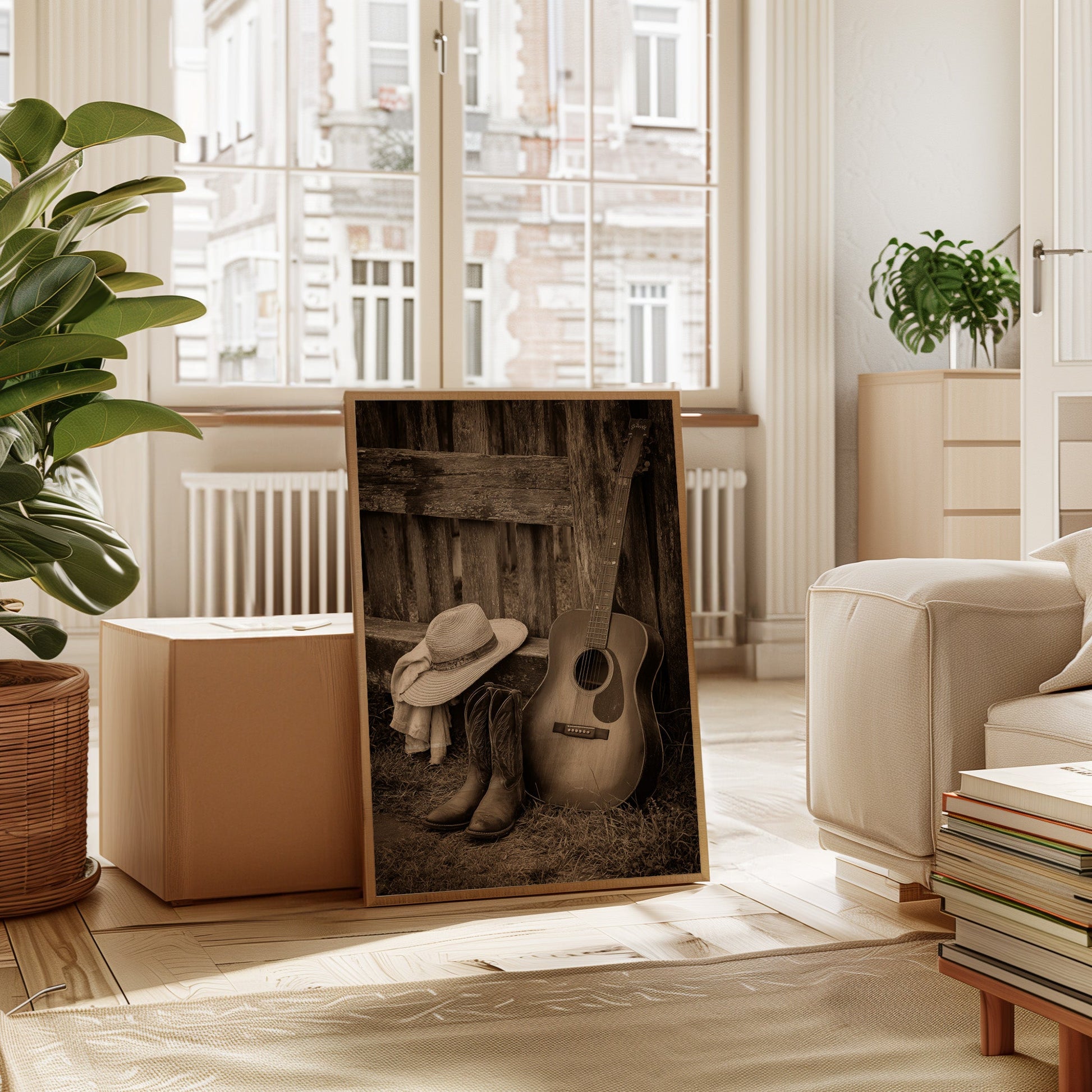In a world where the pace never seems to slow, the charm of a rustic cowboy scene brings us back to simpler times. Imagine the stories whispered through the wind, as boots rest against a weathered fence and a guitar hums the tunes of yesteryears.