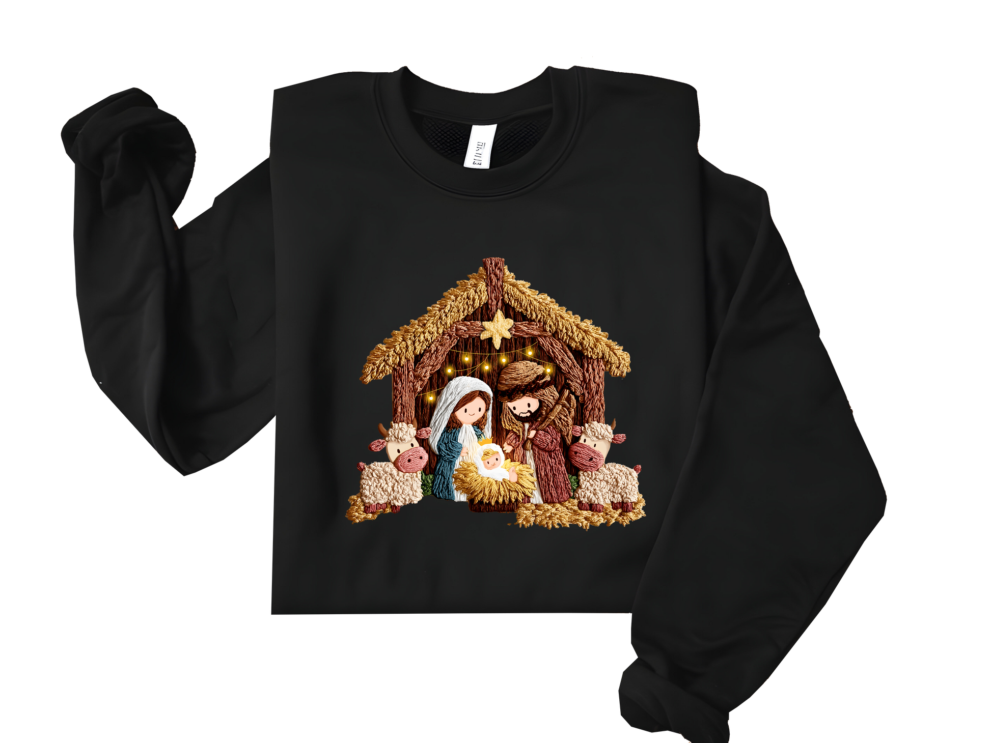 Nativity Scene Sweatshirt or Long Sleeve Tee – Matching Family Christmas Tops