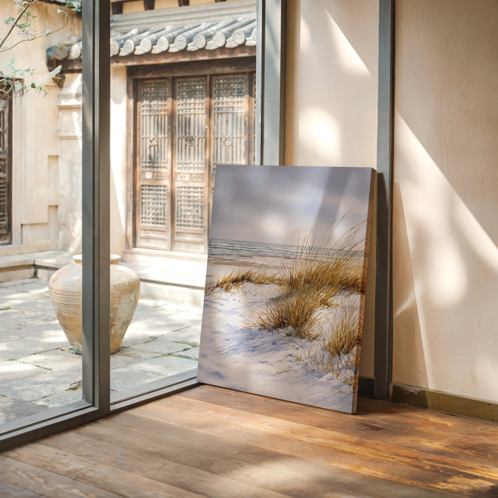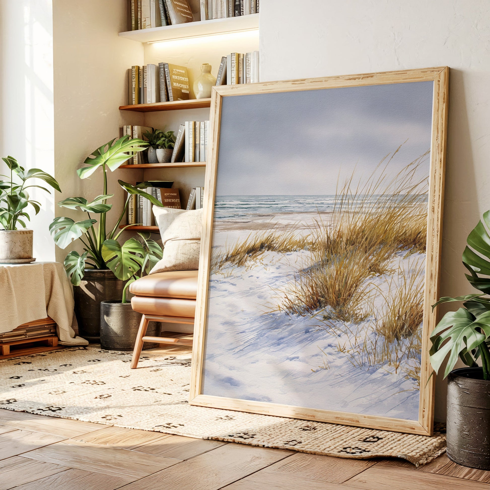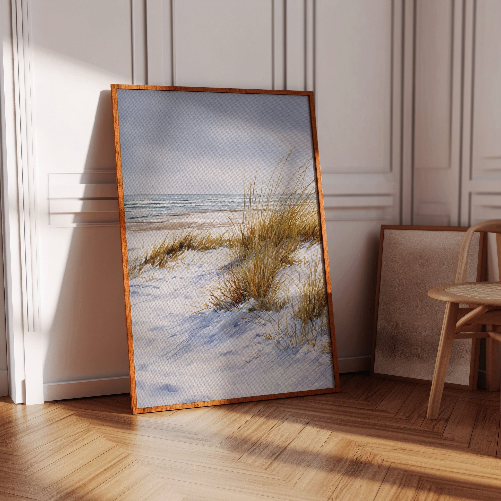 Inspired by the simplicity and beauty of untouched shores, this piece captures the essence of minimalist coastal living. The soft hues and delicate brushstrokes evoke a sense of peace and possibility.