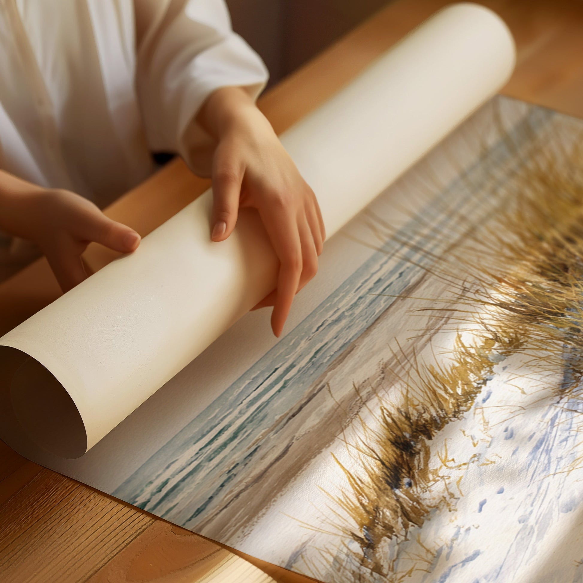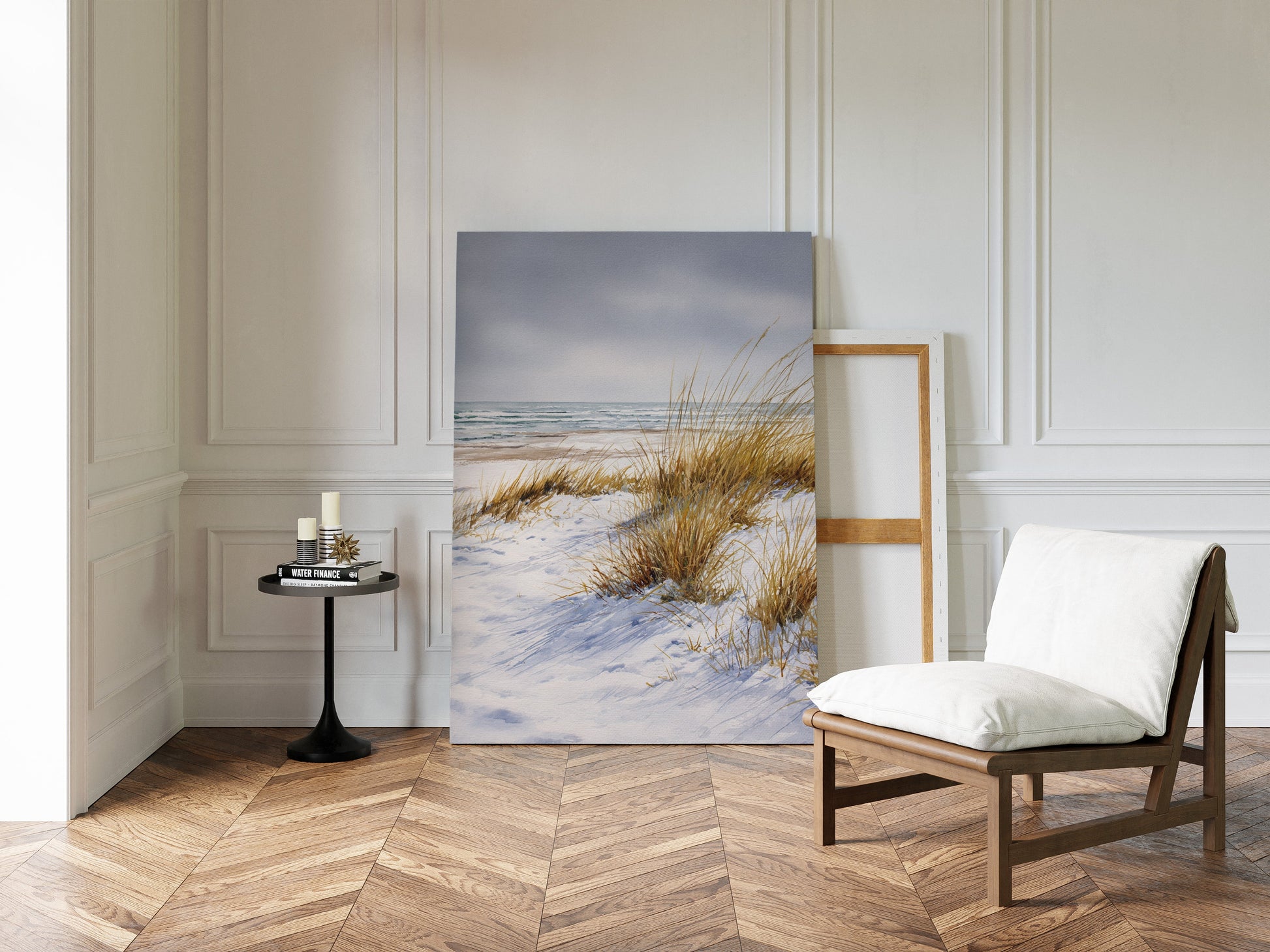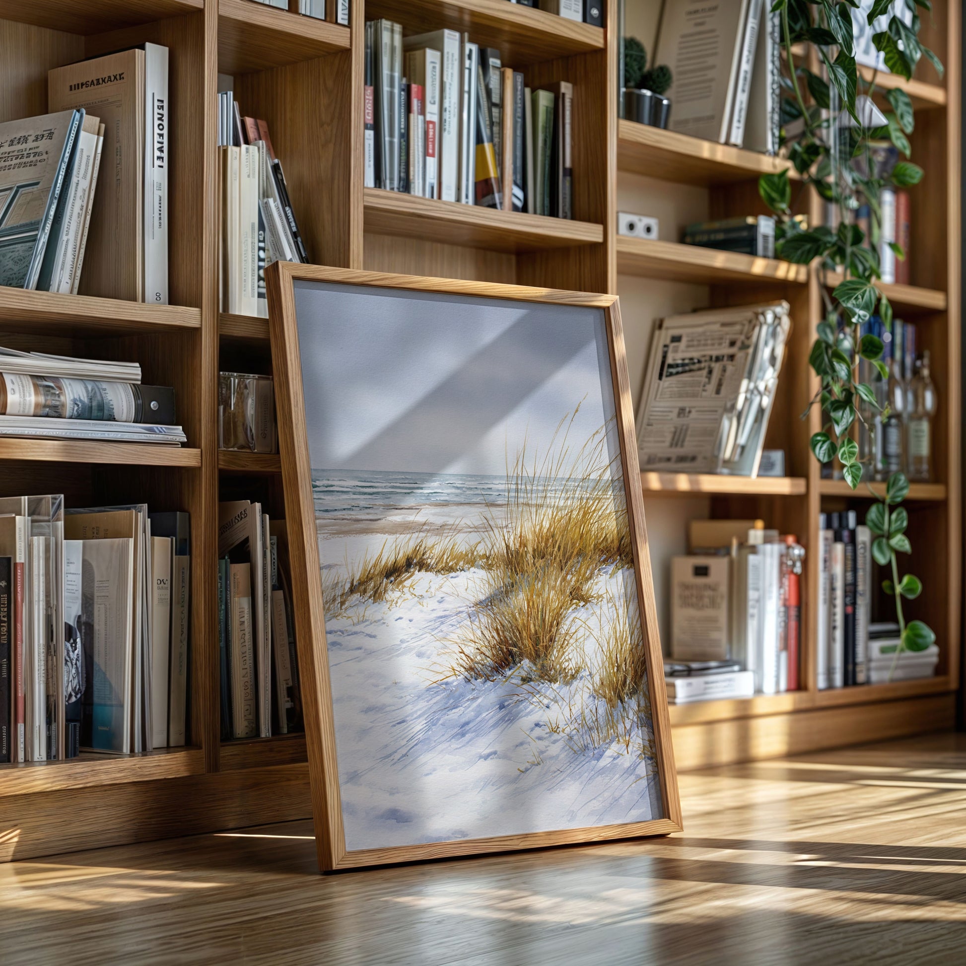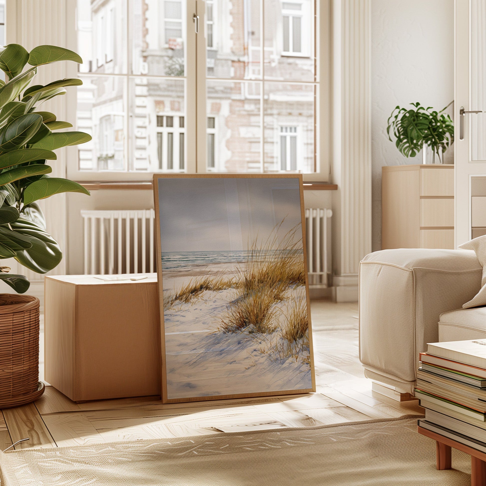Inspired by the simplicity and beauty of untouched shores, this piece captures the essence of minimalist coastal living. The soft hues and delicate brushstrokes evoke a sense of peace and possibility.