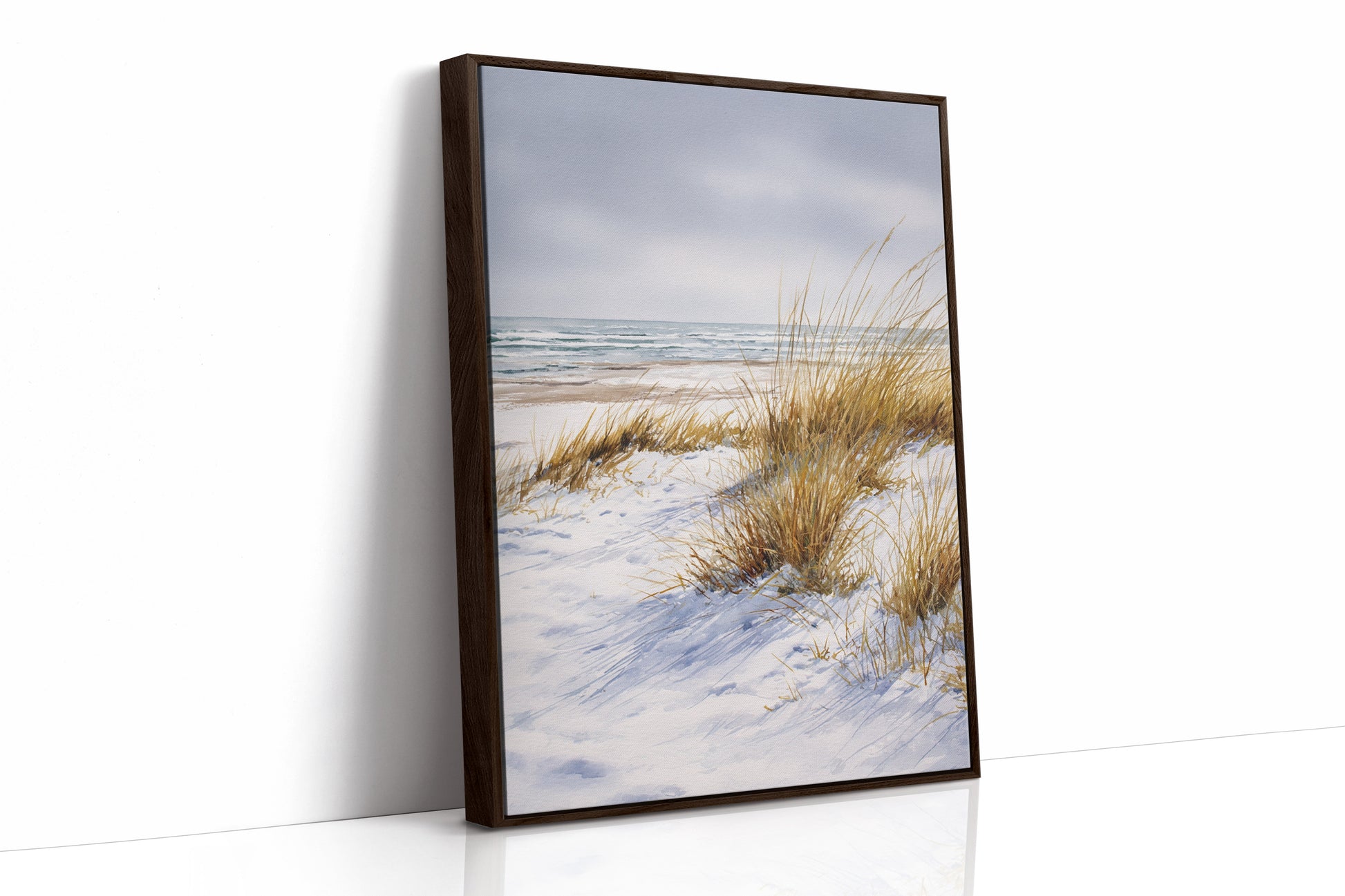 In the rush of modern life, a glimpse of nature's tranquility offers a breath of fresh air. This artwork transports you to a serene coastal scene, where the gentle sway of beach grass meets the calming whispers of ocean waves.