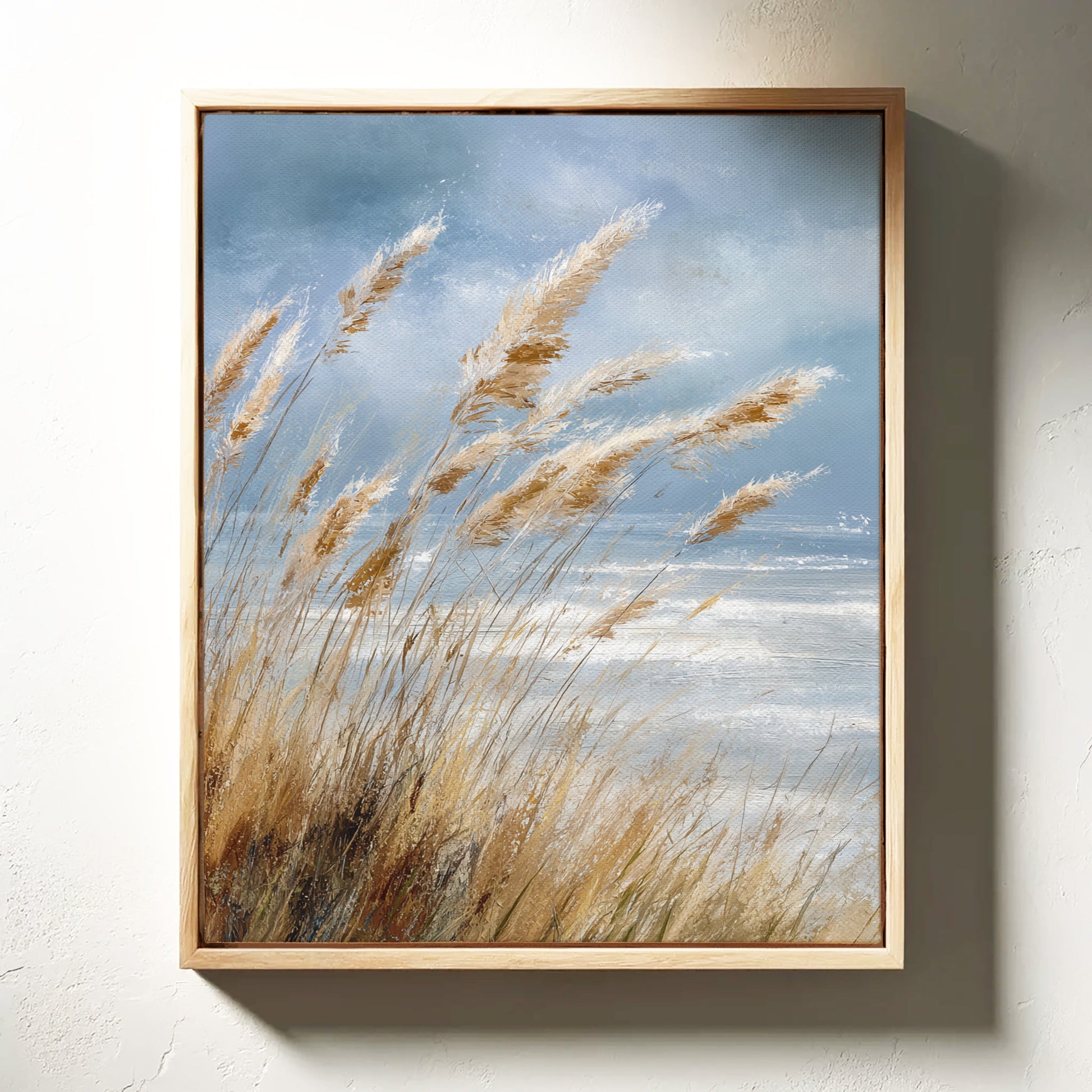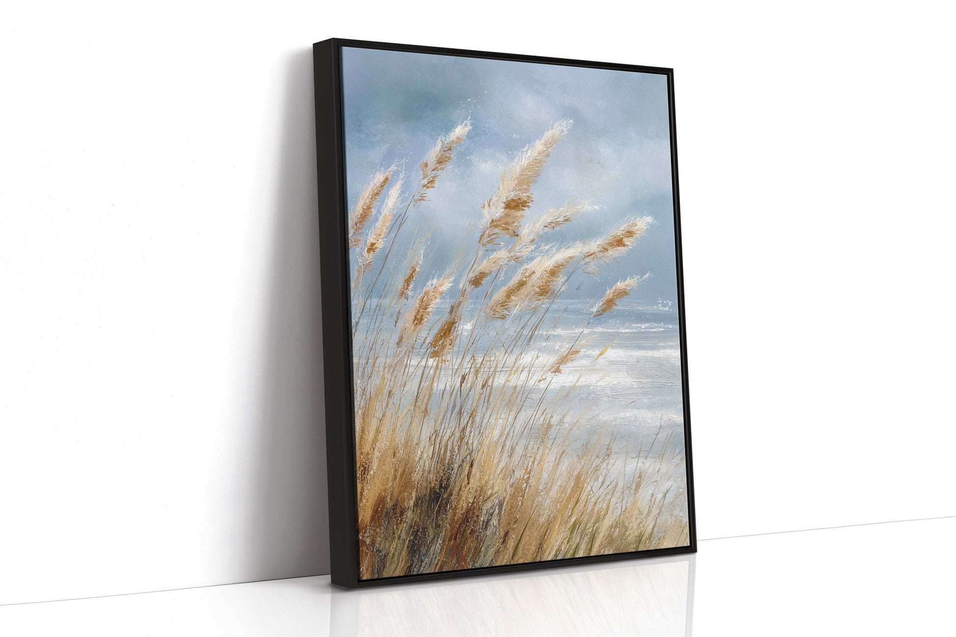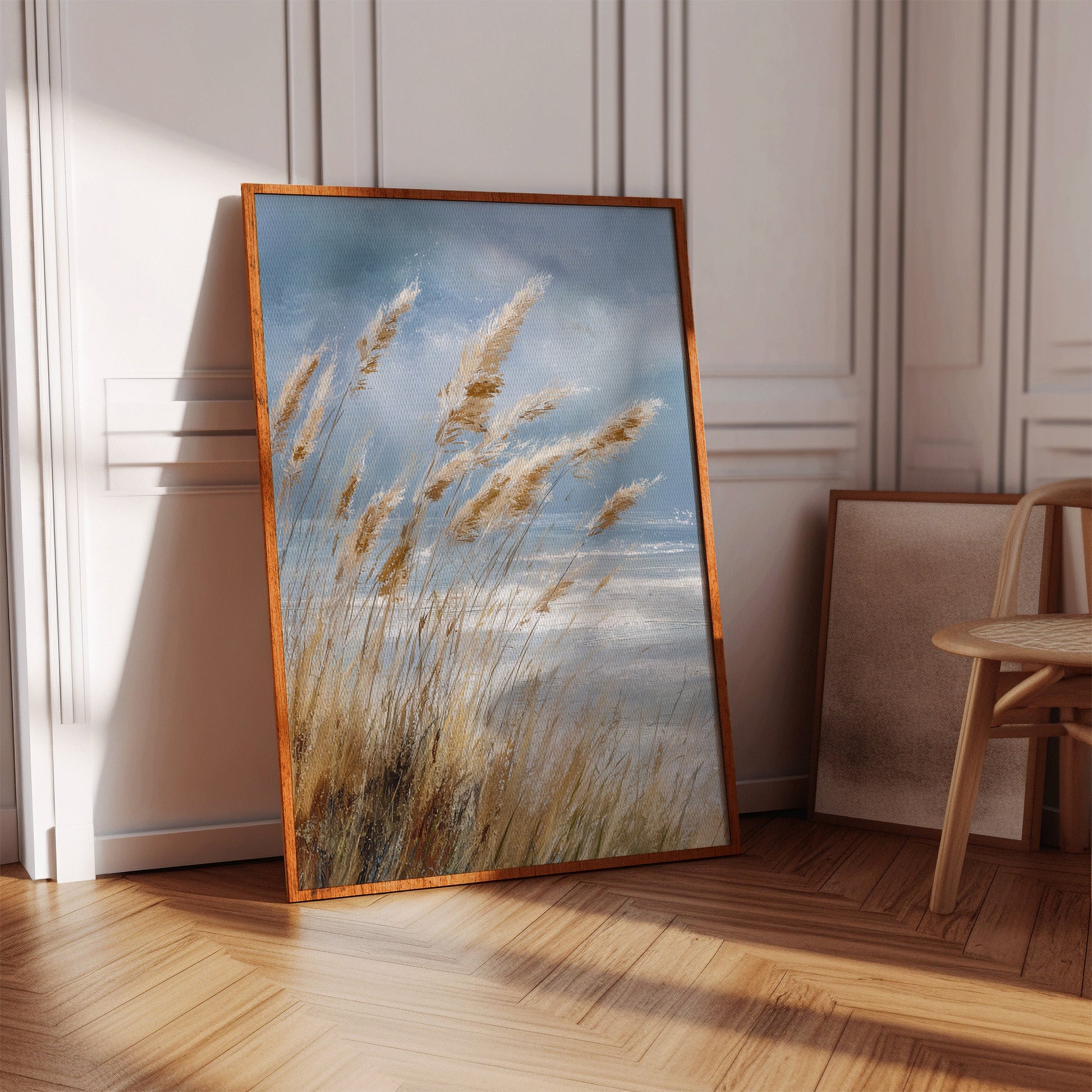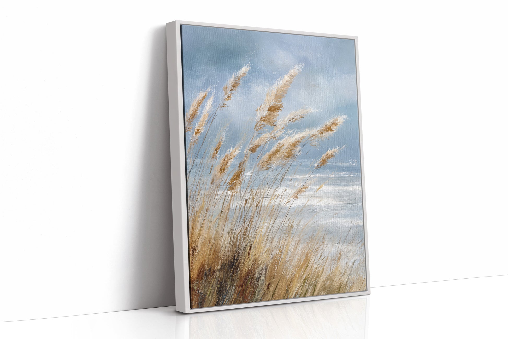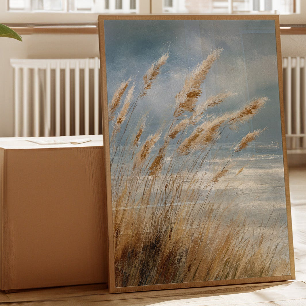 In a world that often rushes by, let the gentle sway of coastal grasses transport you to a place of calm and tranquility. This artwork captures the essence of a serene shoreline, where every breeze whispers tales of the sea.