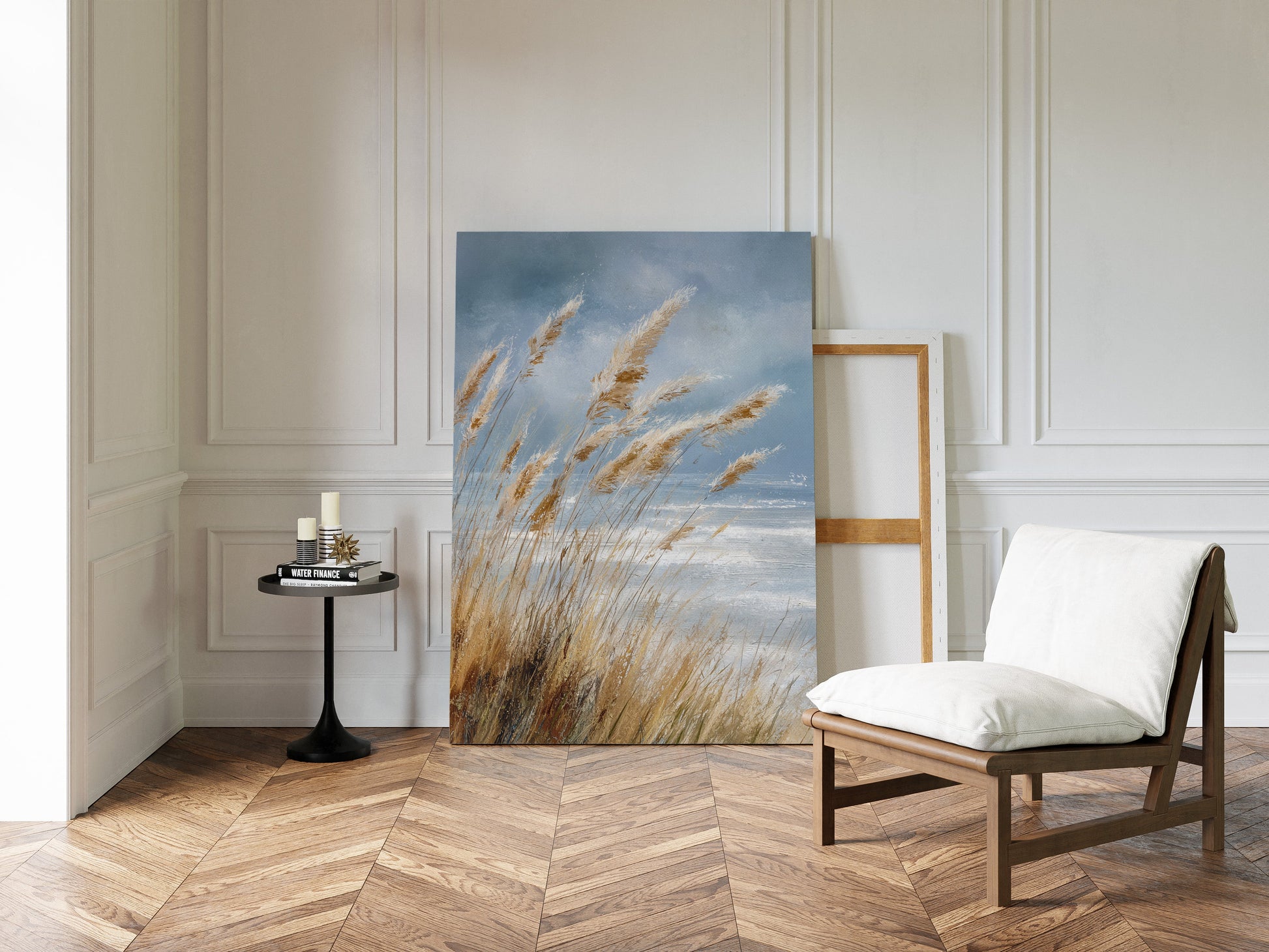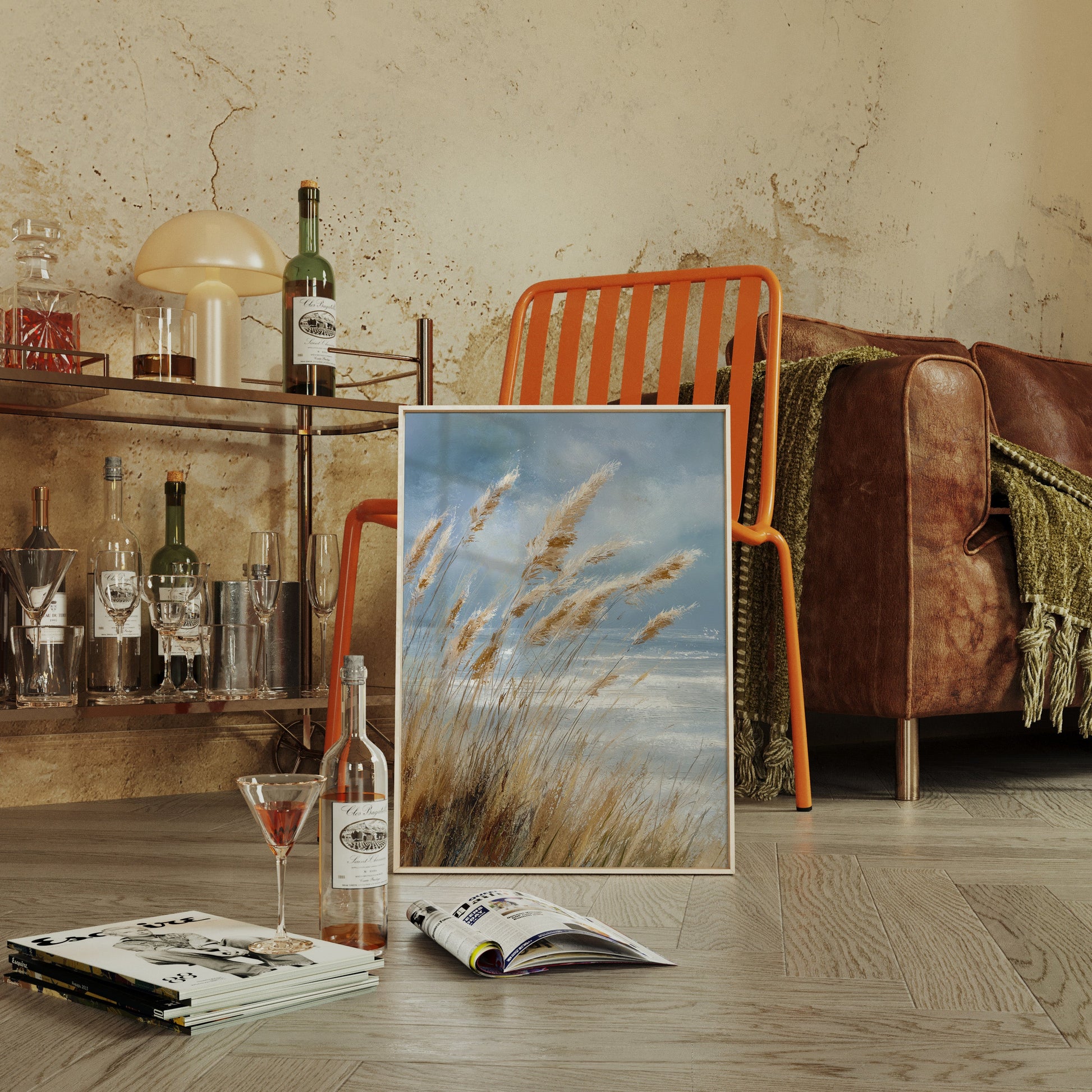 Inspired by the natural beauty of windswept coastlines, this piece embraces the fluidity and grace of nature. The artist's keen eye for detail brings to life the soft, golden hues of the grasses against a backdrop of a vast, open sky.